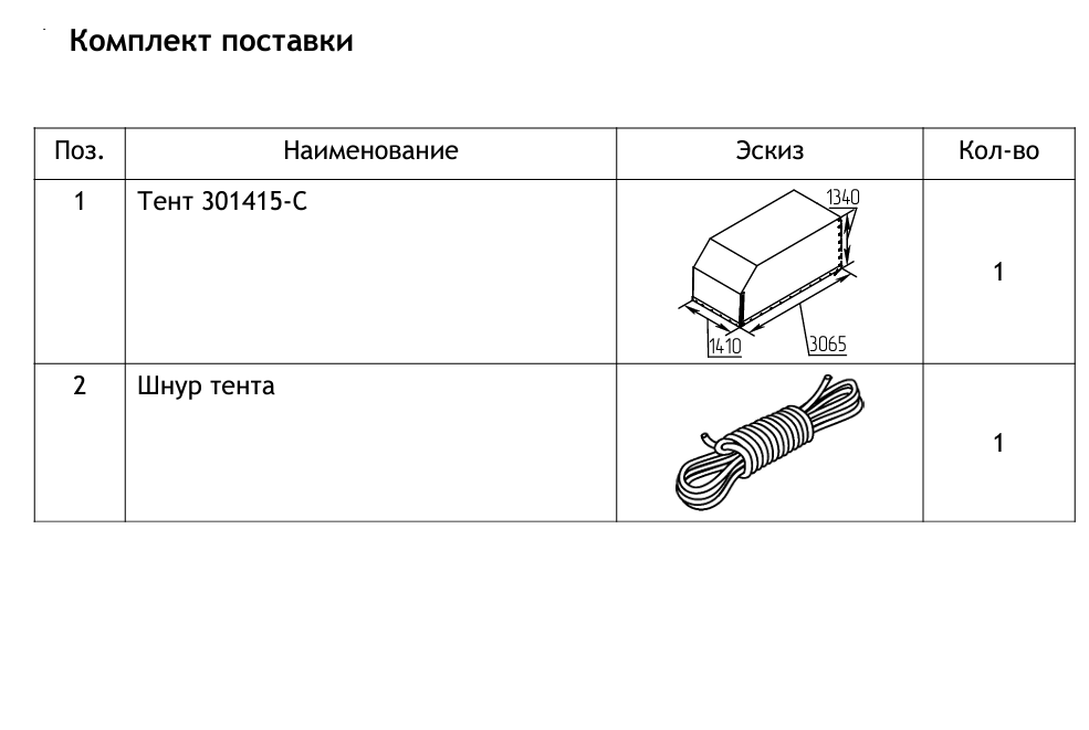 В комплект входит веревка для утяжки тента.