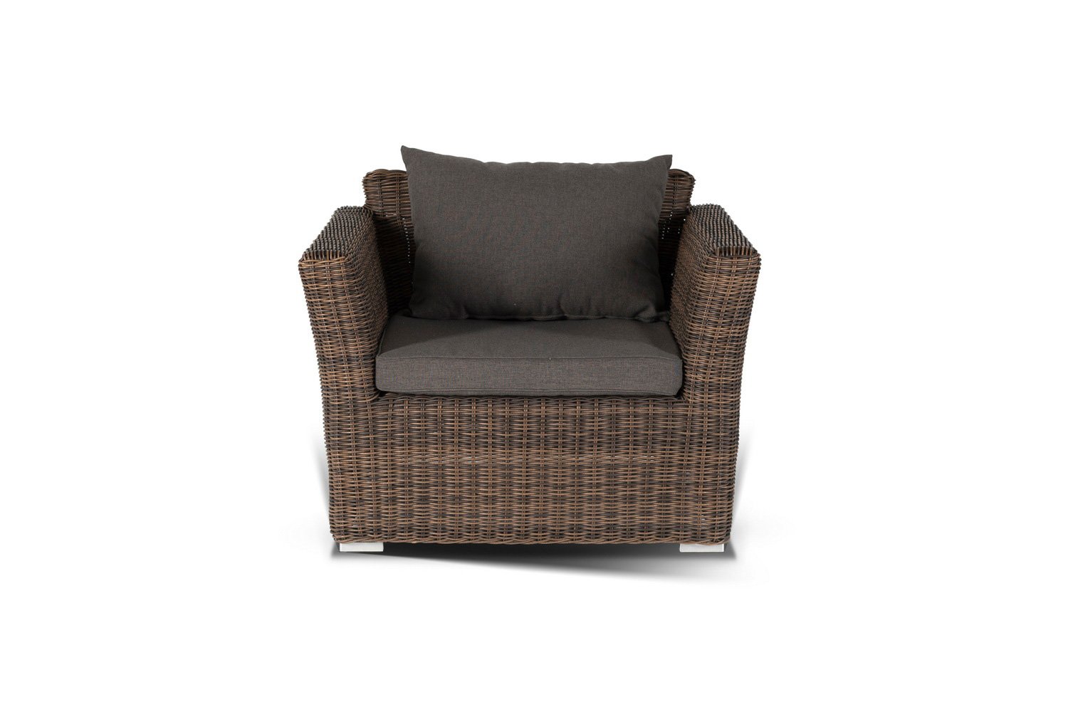 Кресло от 4sis из коллекции Капучино станет прекрасным дополнением к уже имеющемуся комплекту мебели в том же стиле, либо может выступить самостоятельным элементом меблировки как на природе, так и дома, возле бассейна или на закрытых верандах. Его форма почти квадратная, с подлокотниками, незначительно наклоненными в стороны, и широкими стенками.