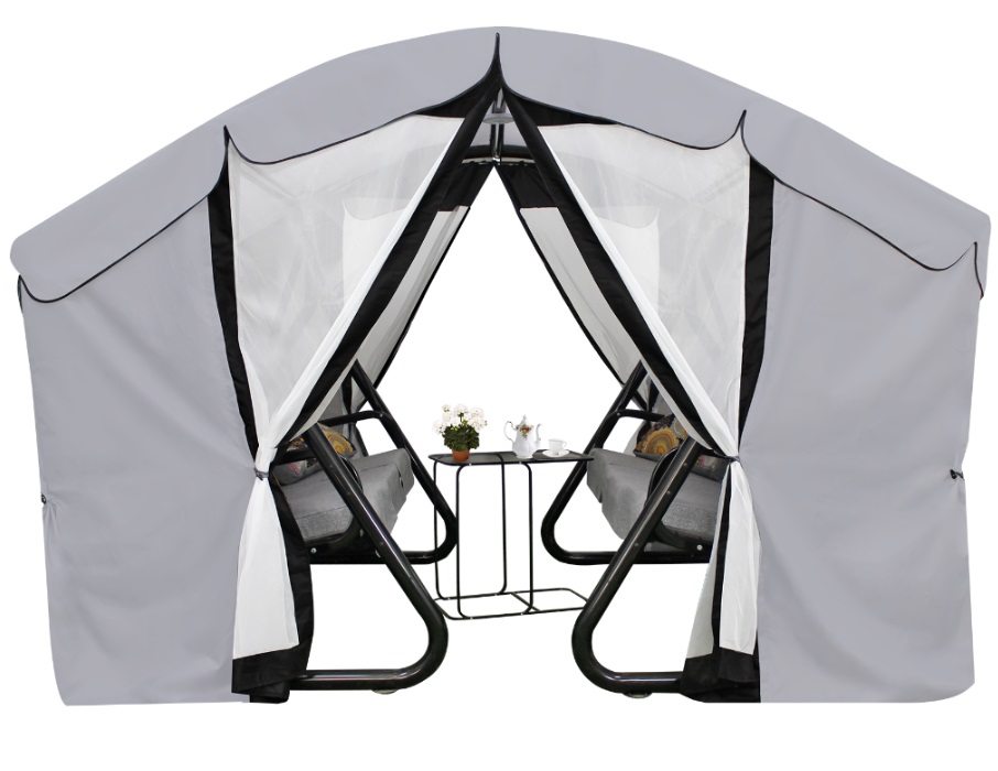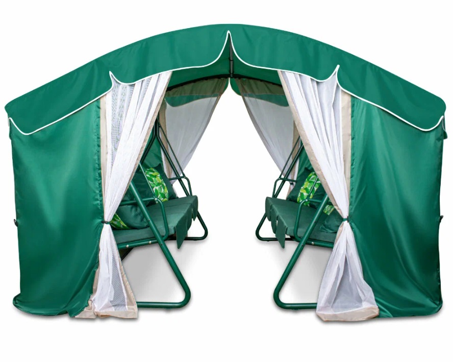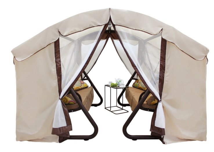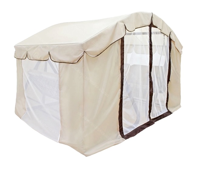 Вы можете приобрести тент-шатёр, предназначенный для садовых качелей, данный тент подойдёт для общих размеров садовых качелей 305 х 202 х 197 см. Вес данного тента составляет 1,5 кг, изготовлен он из такой ткани, как Оксфорд 210 светло-бежевого цвета с коричневой окантовкой. Также в комплекте с данным тентом находится антимоскитная сетка, которую с лёгкостью можно убрать при ветре или отсутствии насекомых.